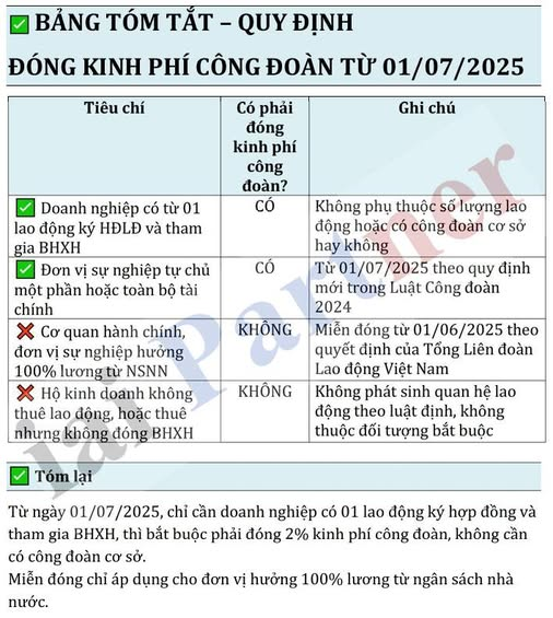QUY ĐỊNH ĐÓNG KINH PHÍ CÔNG ĐOÀN TỪ 01/07/2025